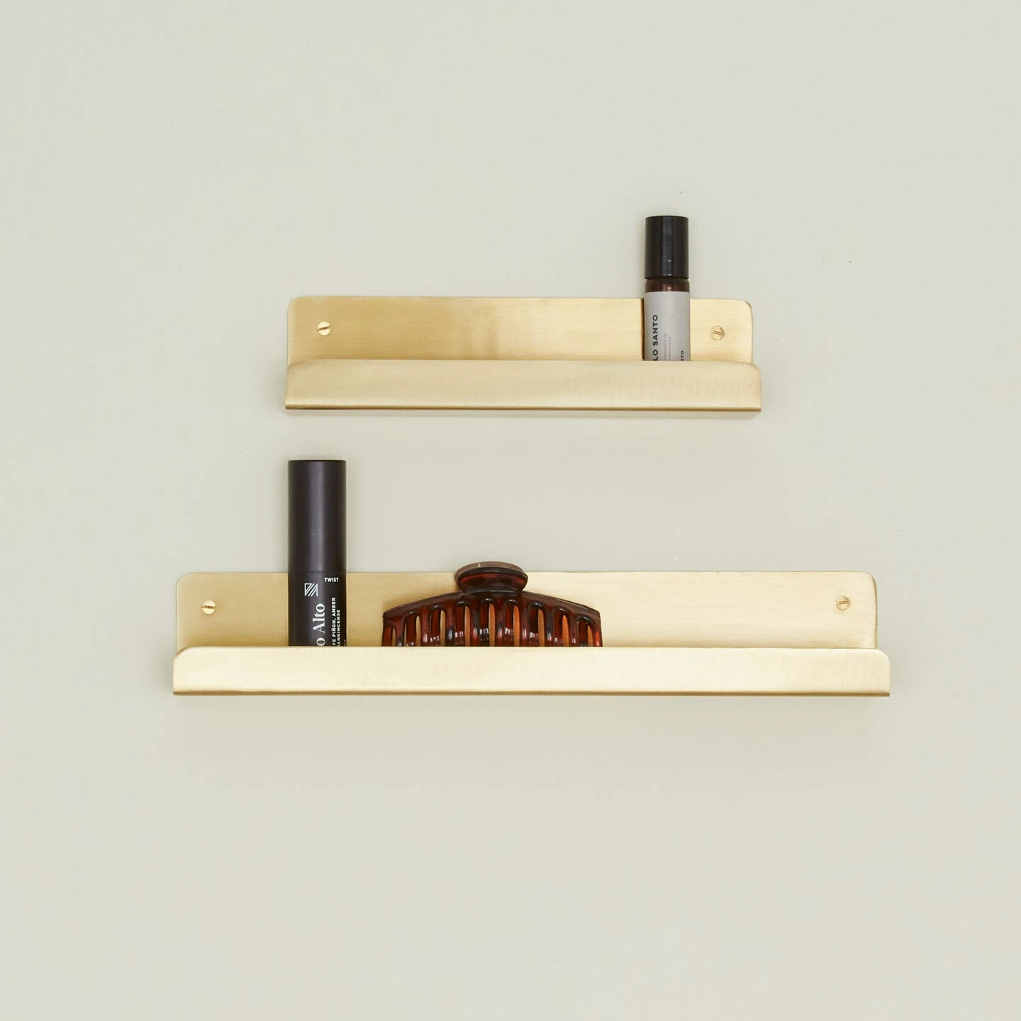 - Handmade antiqued brass shelf (slight variations in finish are possible)