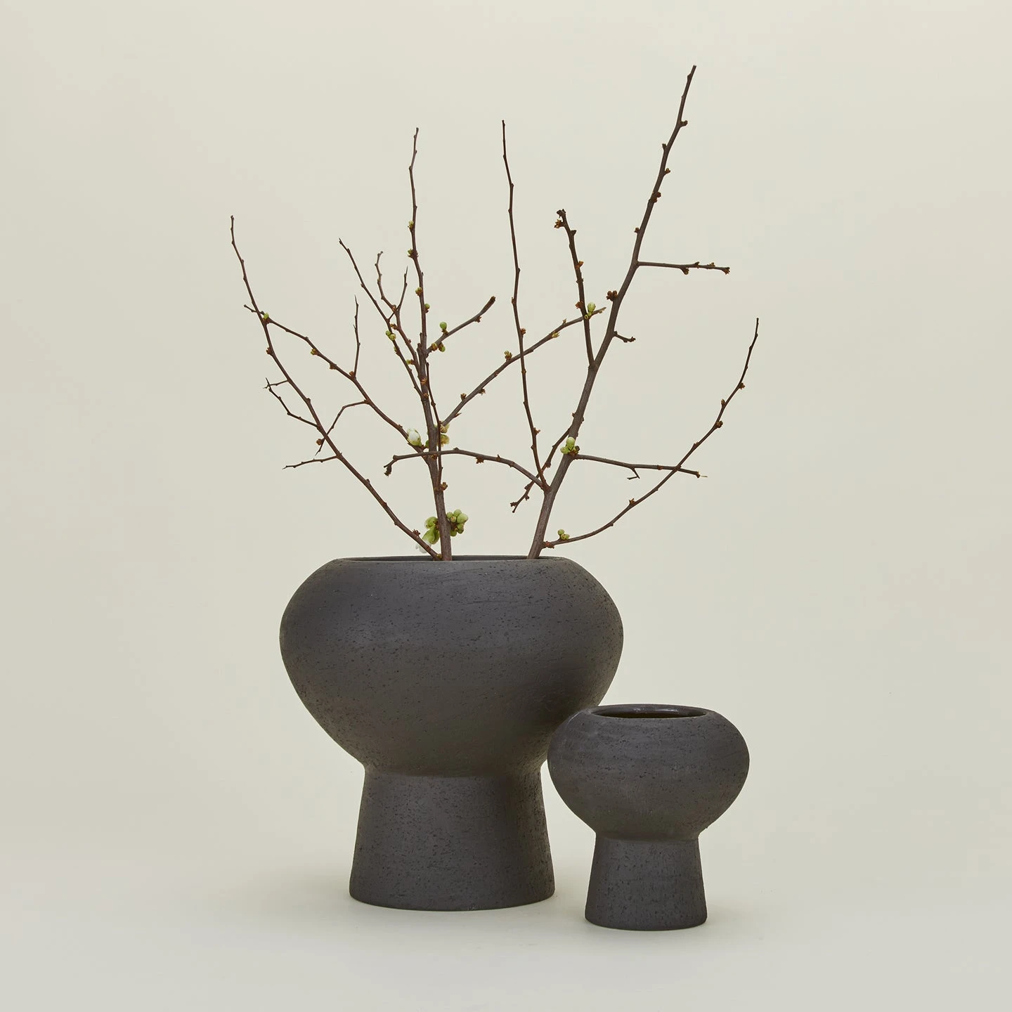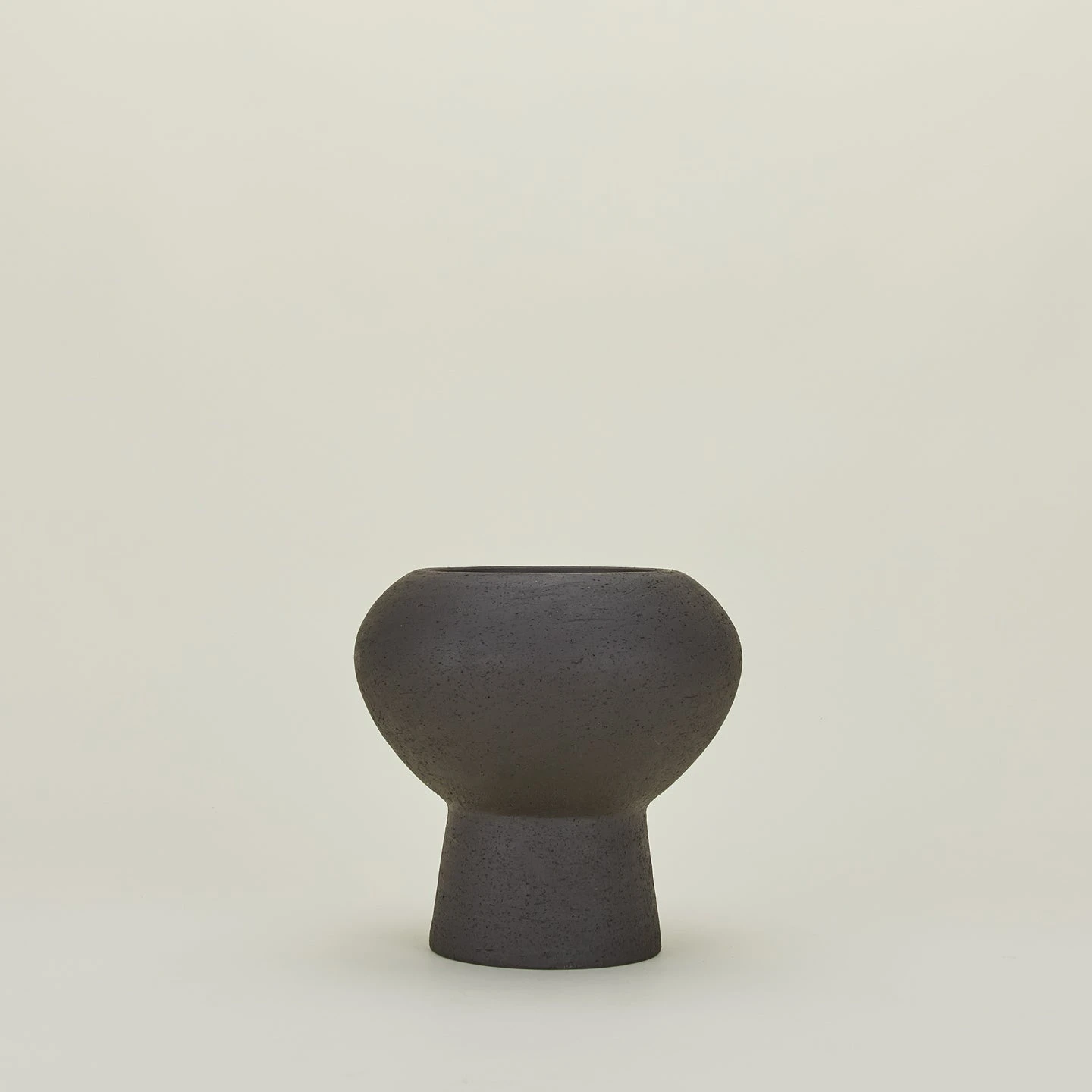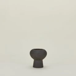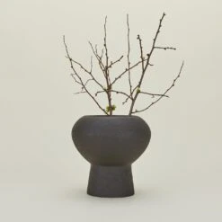 - Crafted from black clay with a textured exterior