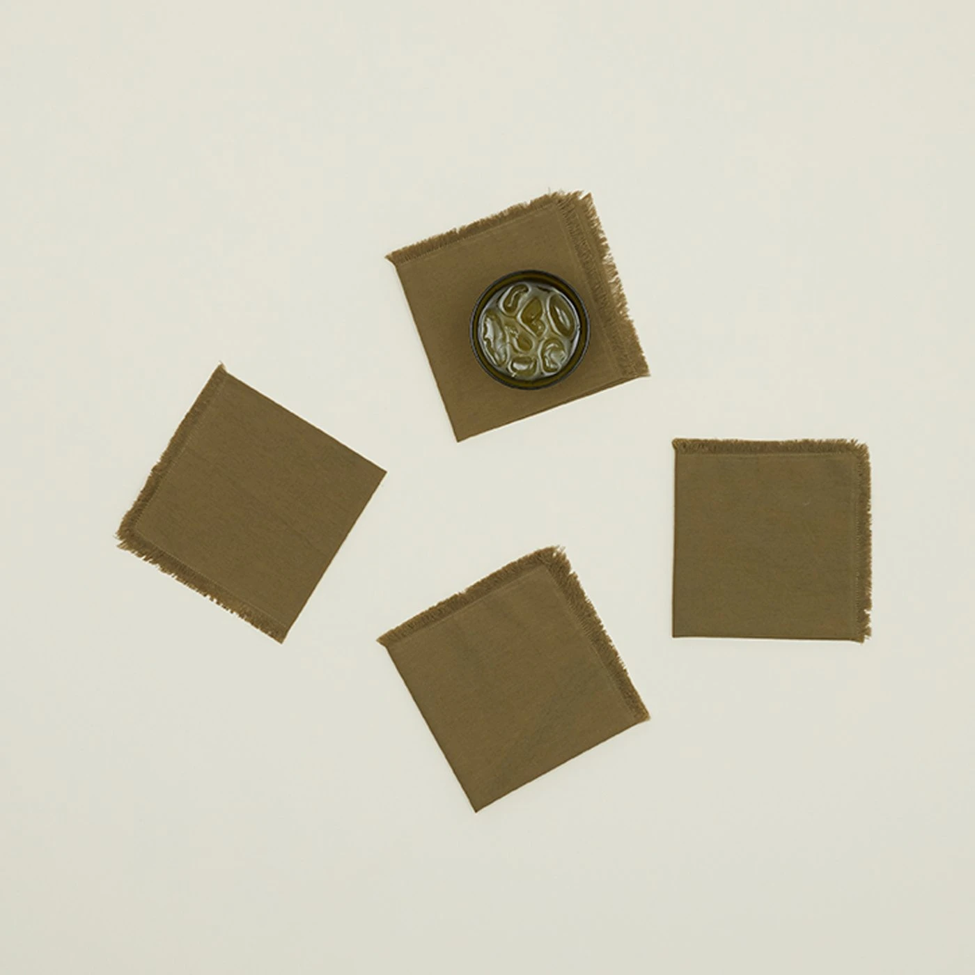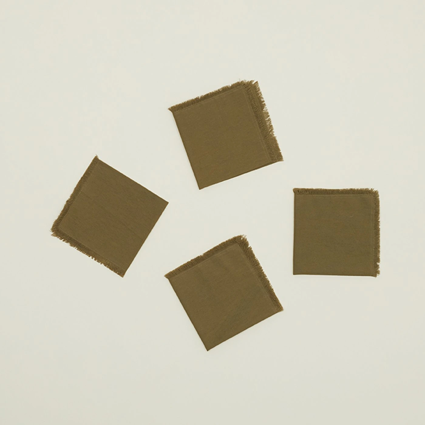 - Hand-dyed cotton cocktail napkins, with a soft fringed edge