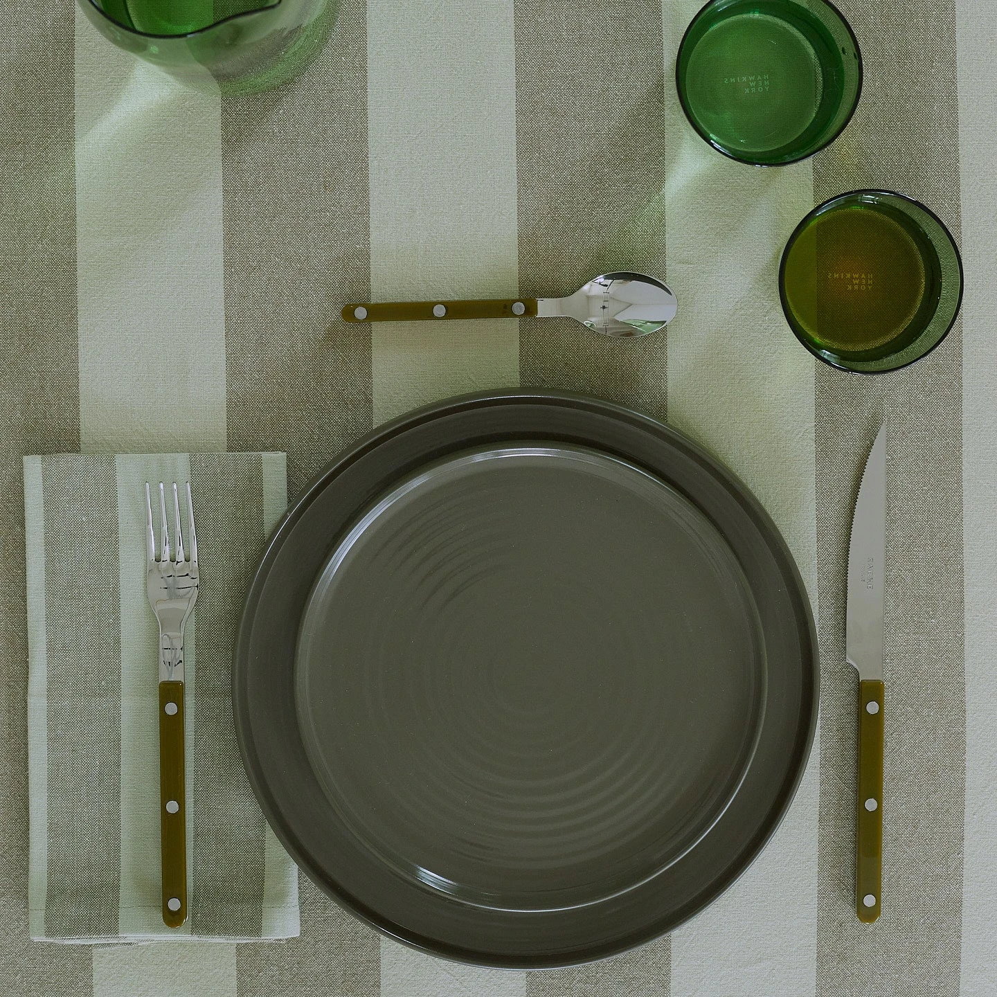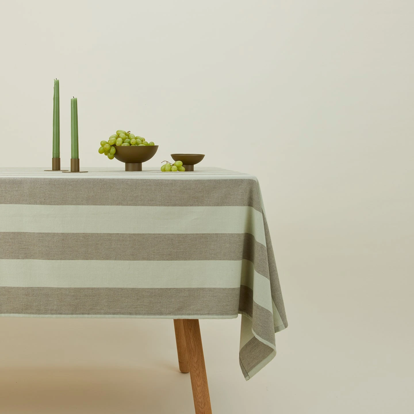 - Striped cotton tablecloth in Sage/Olive