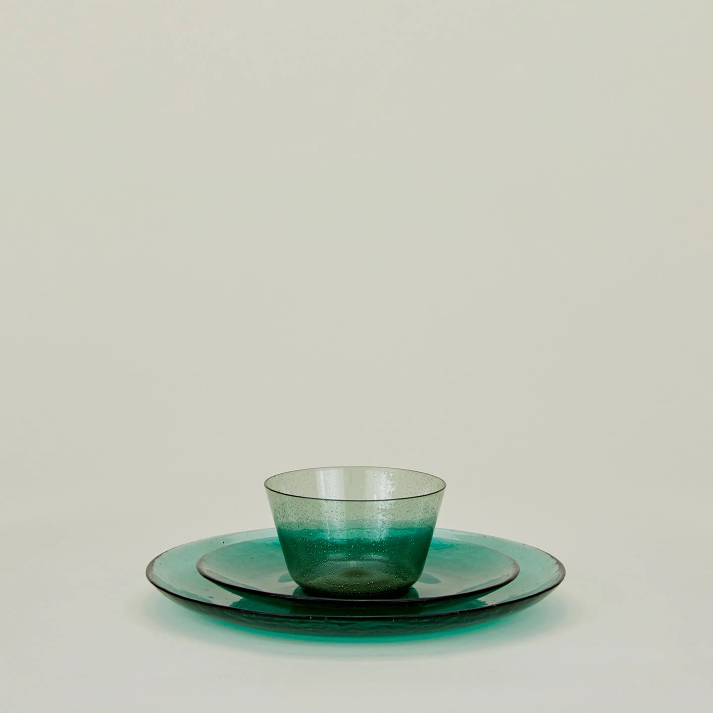 - Handmade + hand blown recycled glass salad plate in Jade