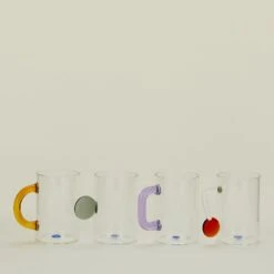 - Set of 4 hand crafted borosilicate glass tea cups with unique, colorful handles