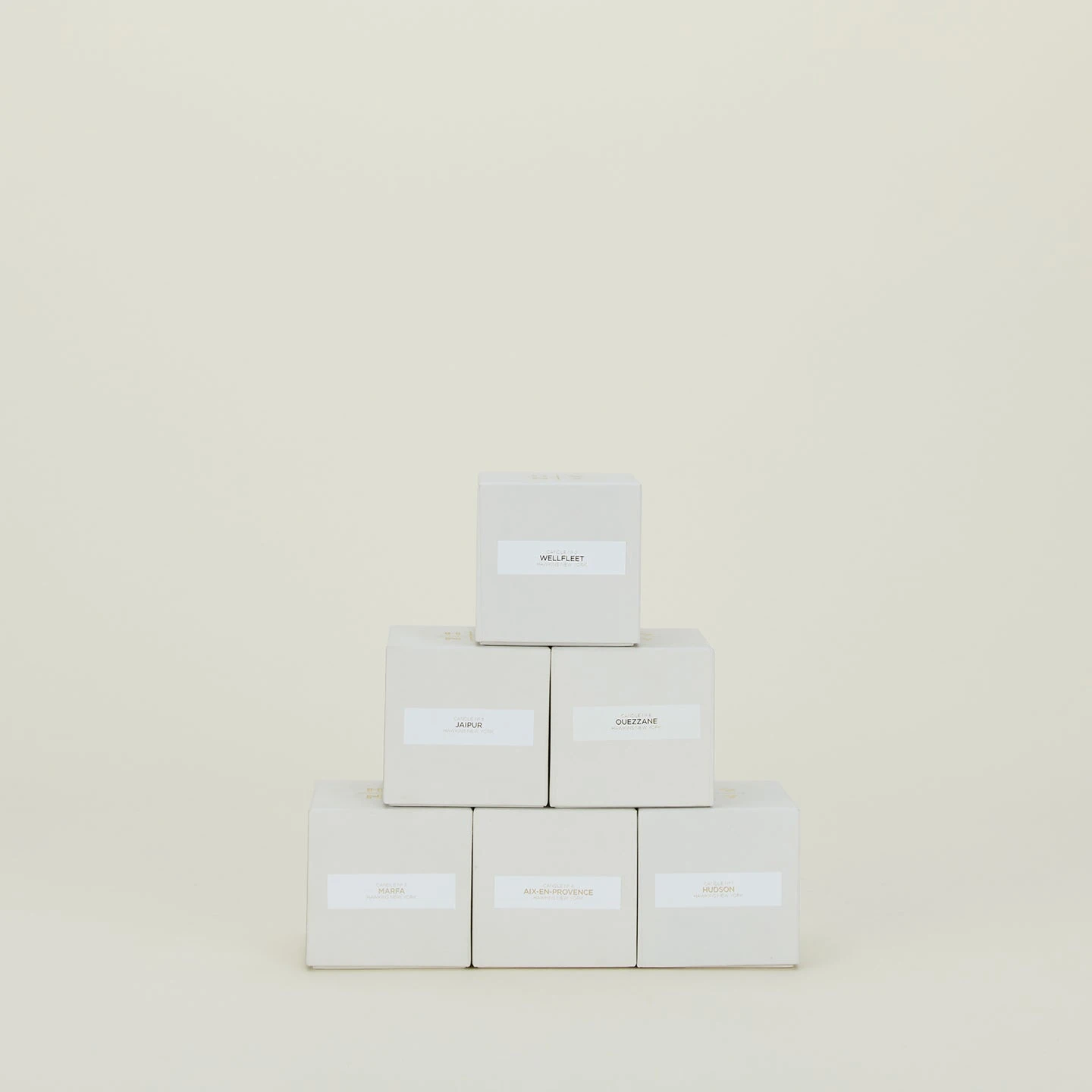- Our 6 scented candles evoke olfactoral memories of places we love