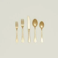 - 5 piece set (salad + dinner fork, dinner knife, dinner + dessert spoon)