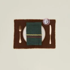 Set of 2 linen-wool placemats in Leather