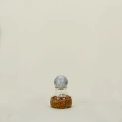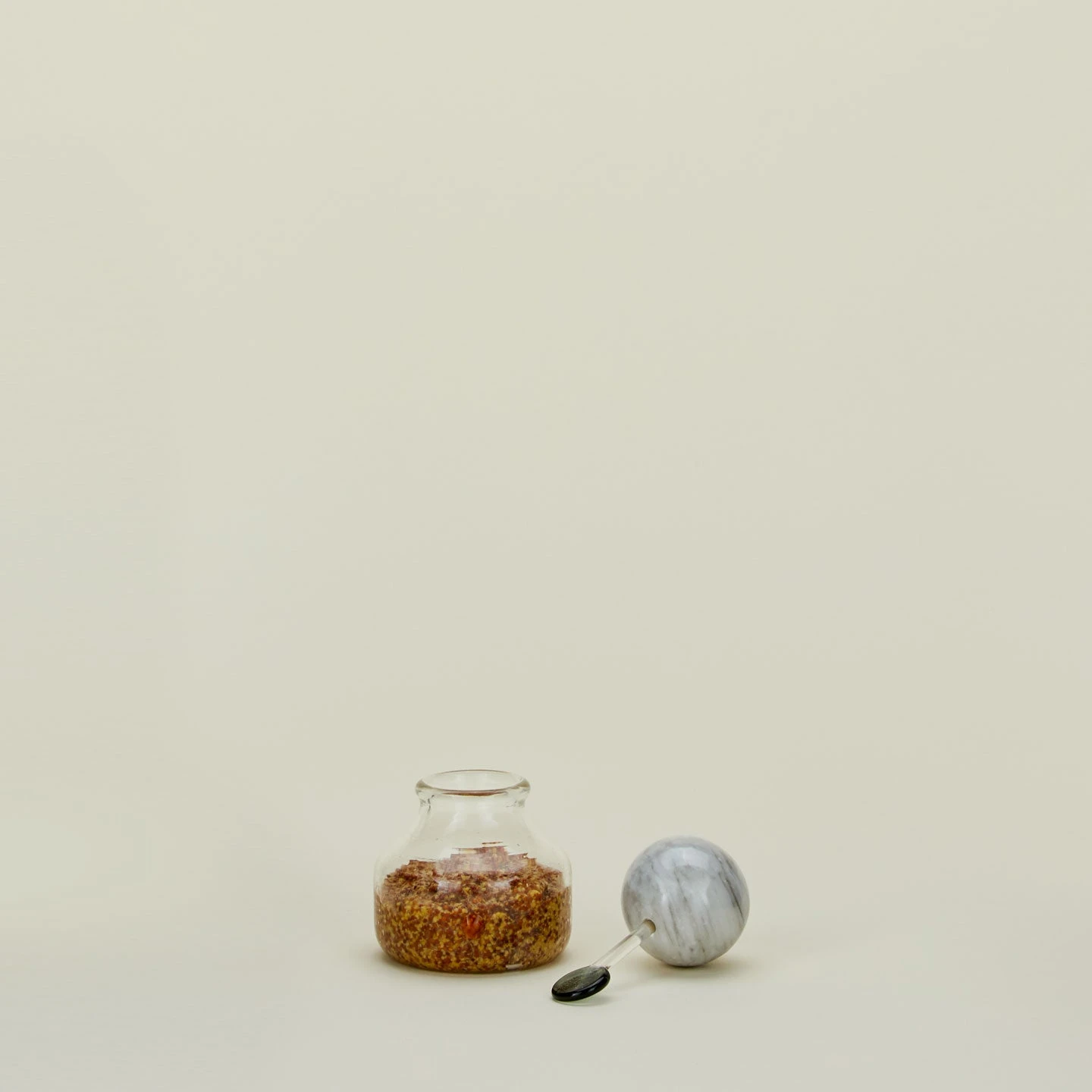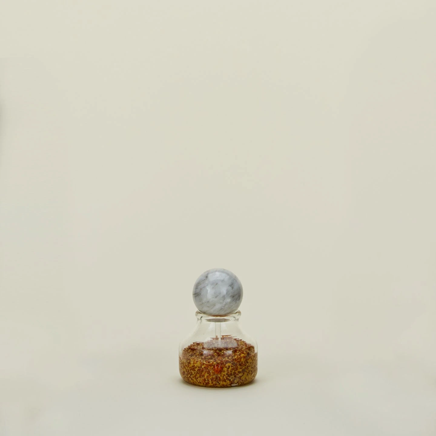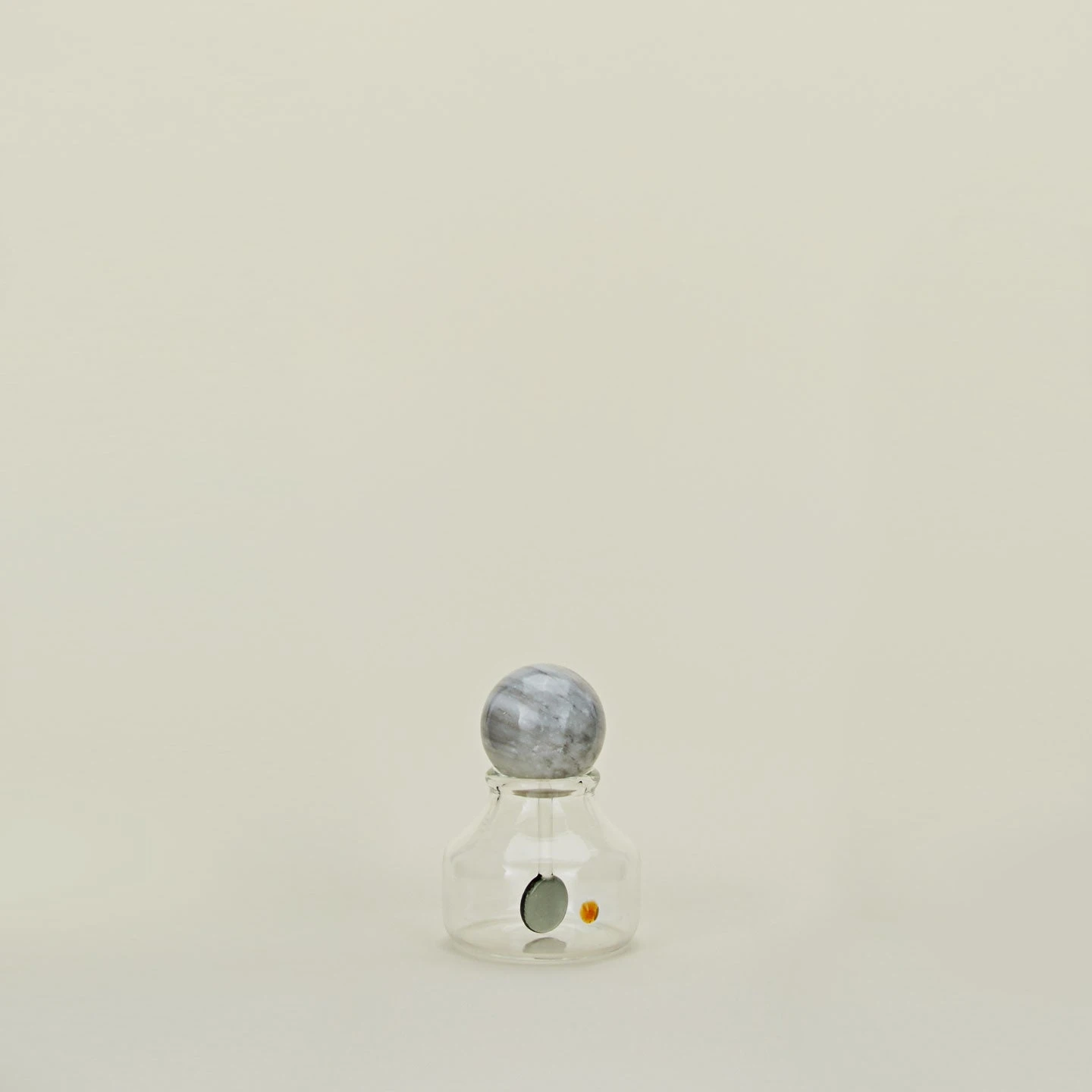 - Handmade glass container with a marble lid