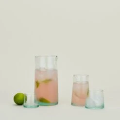 - Mouth blown recycled glass with a slight sea tint and a slight bubbled patterning