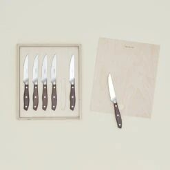 - Serrated 6 piece steak knife set with a beautiful birchwood case