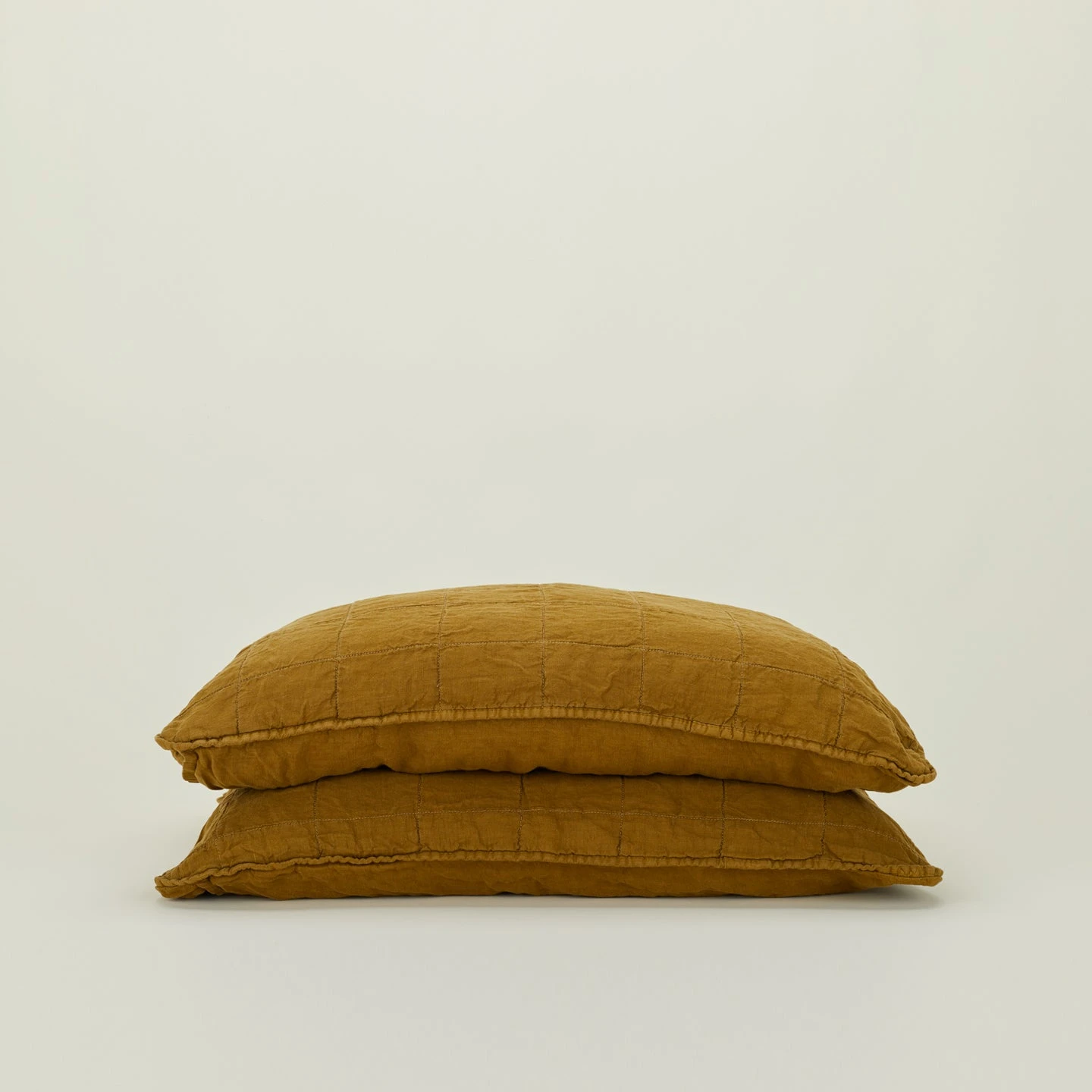 Simple Linen Quilted Shams, Set Of 2 – Bronze