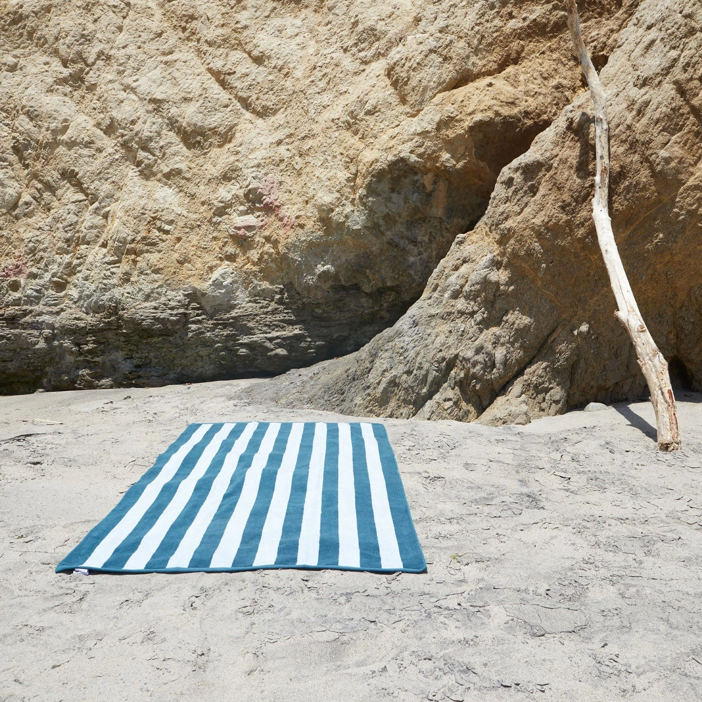 Simple Striped Terry Beach Towel – Sky/Peacock