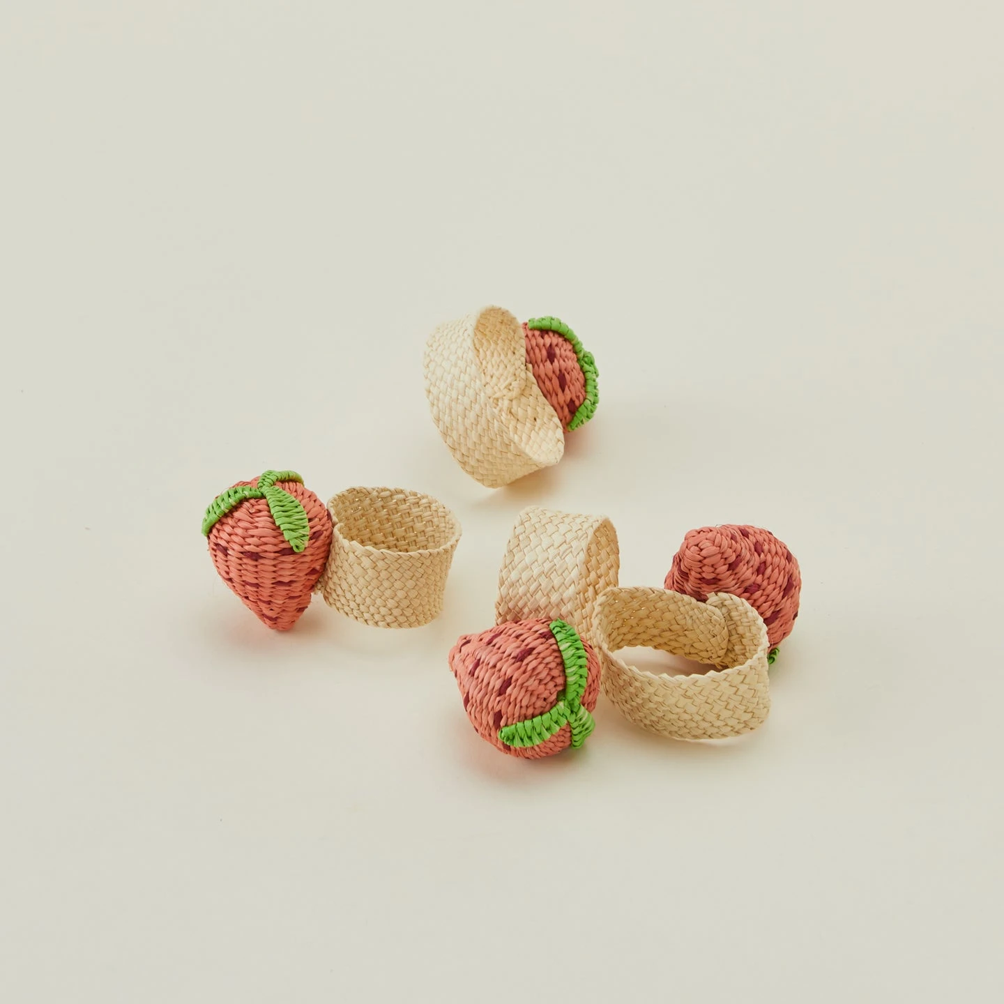 - Set of 4 woven napkin rings topped with cheerful strawberries